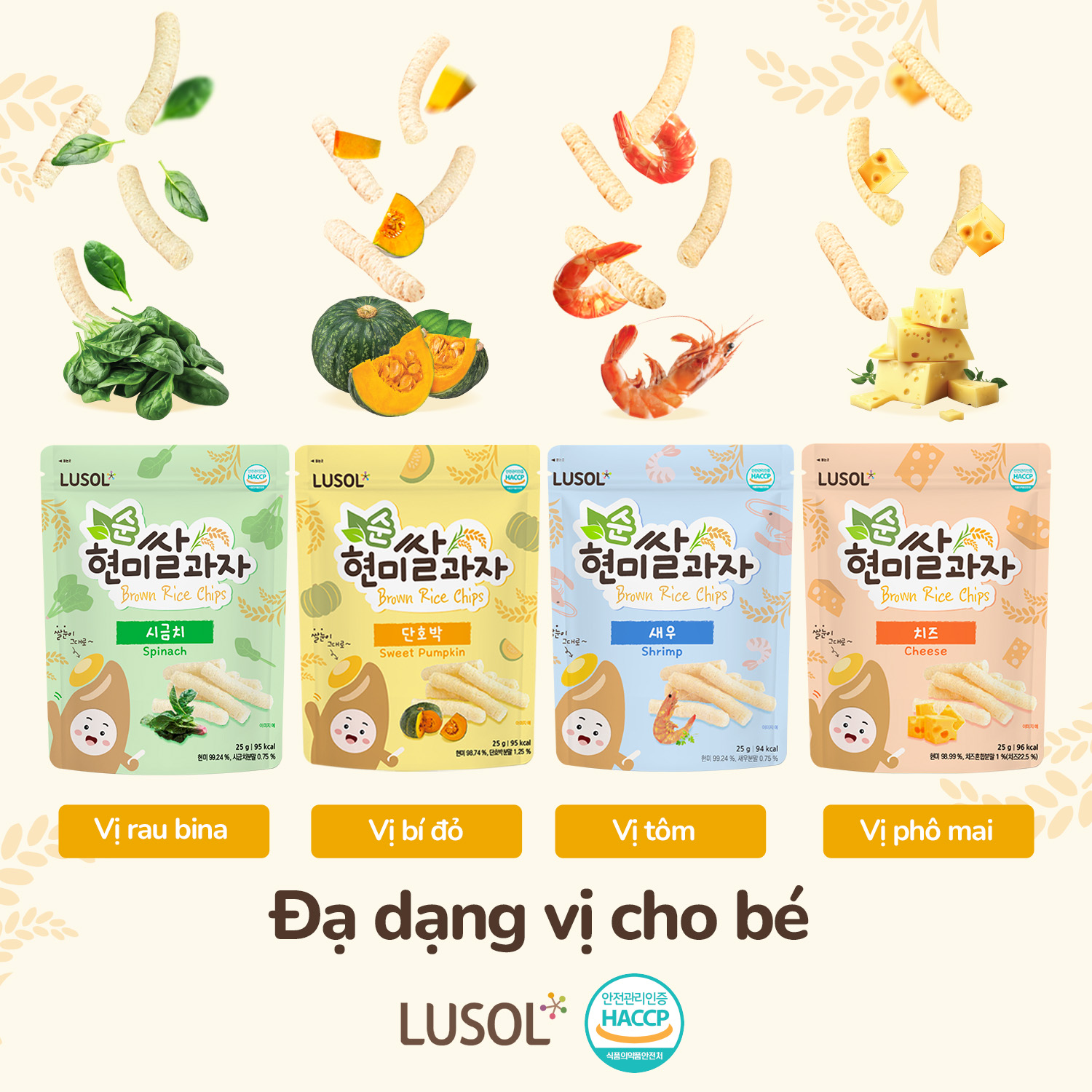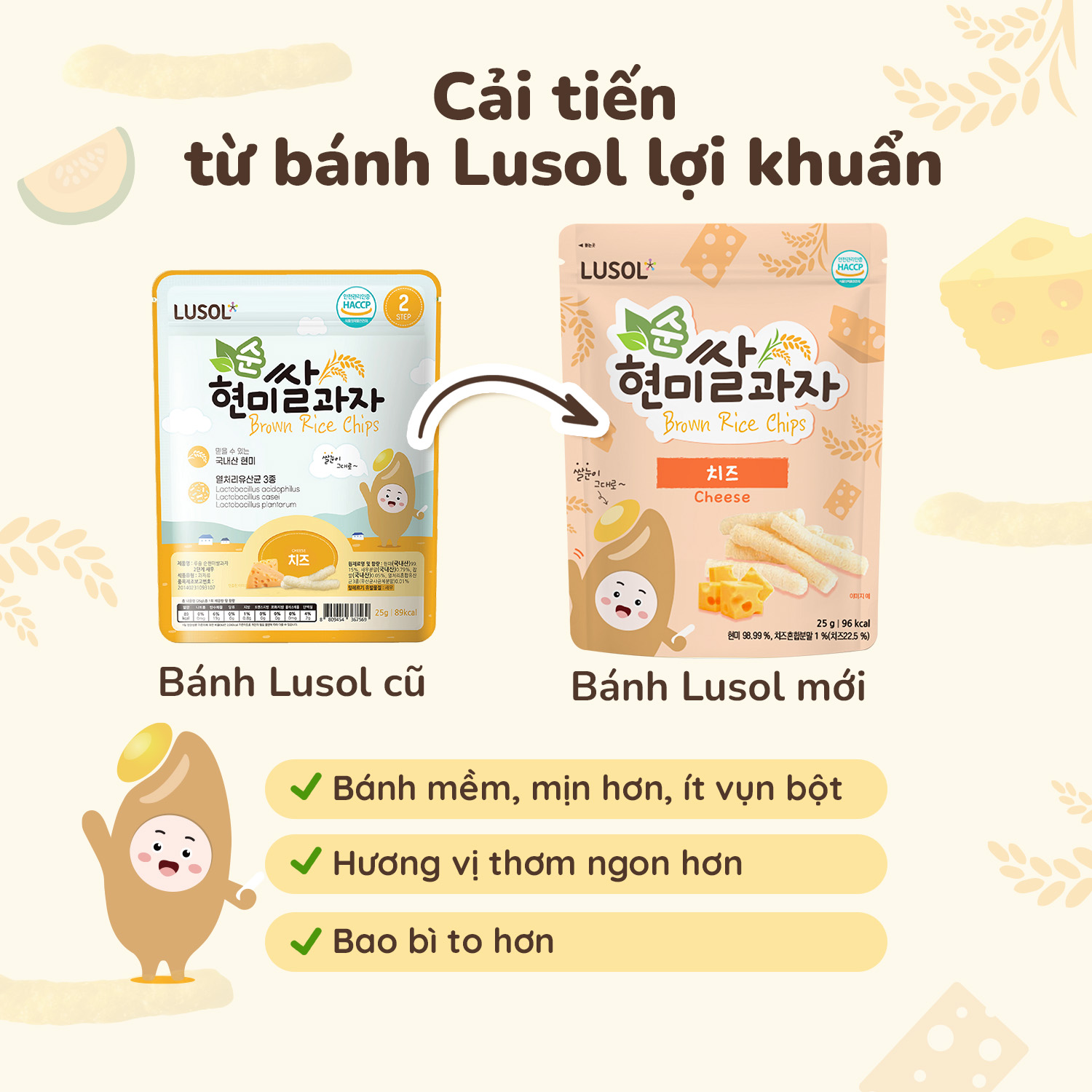 Tên sản phẩm: Bánh ăn dặm Lusol Tripple chesse và sữa chua chuối