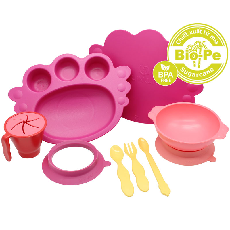 Set khay thiên thần 10 chi tiết UINLUI làm từ Mía – Hồng đậm