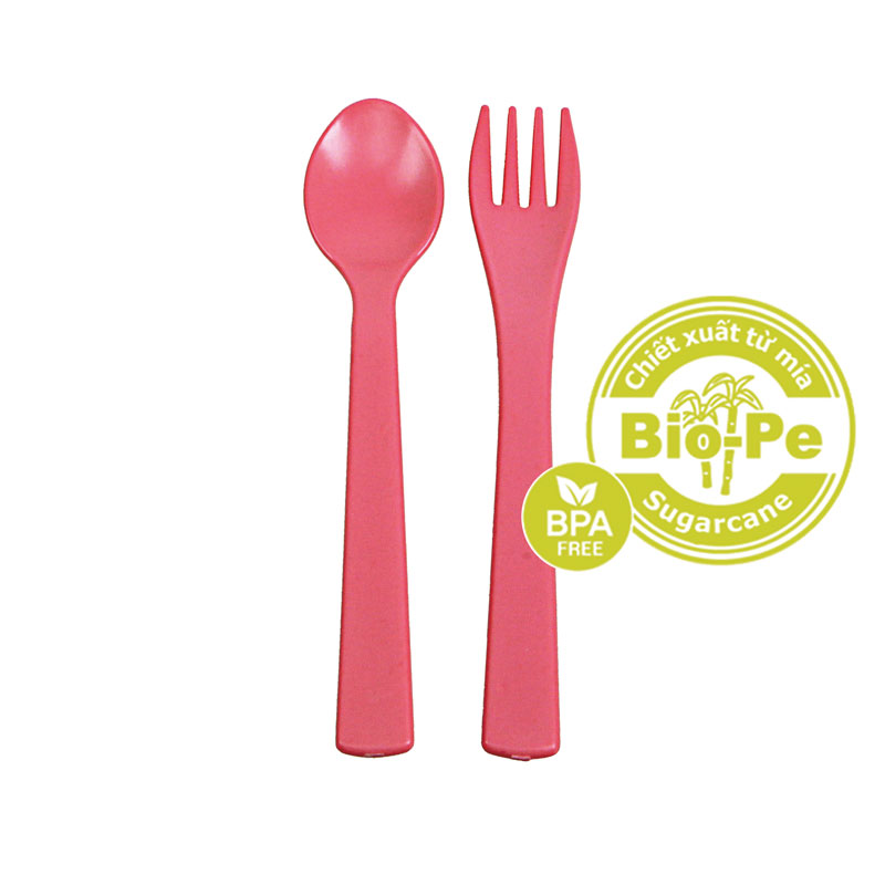 Set thìa và dĩa 2 món làm từ nhựa sinh học Mía – Hồng